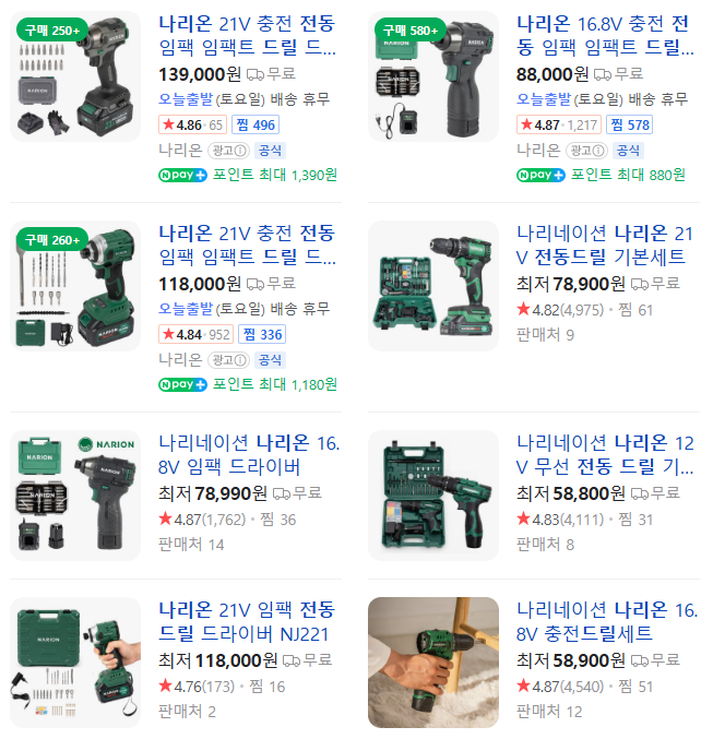 ① 나리온 16.8V 무선 전동드라이버