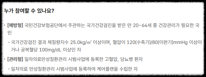 - 대상: 고혈압, 당뇨병 등 만성질환 관리가 필요한 국민