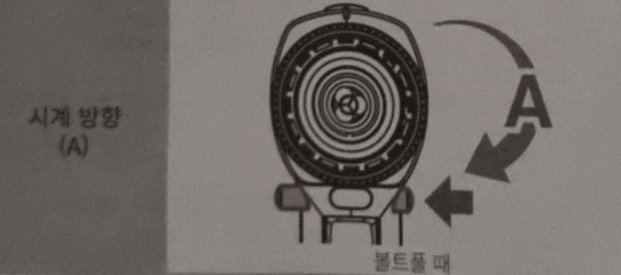 * 볼트 풀 때는 시계 방향 회전 ( 공구를 밑으로 했을 때 좌측 레버 누름)