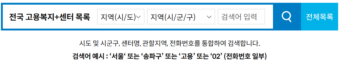 [각 지역 고용센터 검색]