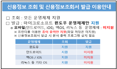 ☞ 신용정보 조회 및 신용정보조회서 발급 이용안내