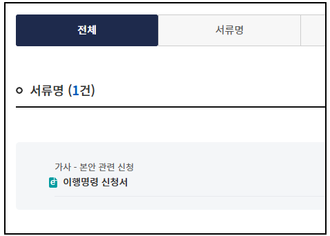 '이행명령신청서'는 법원 전자소송포털 사이트에서 '이행명령신청서'로 검색하여 다운로드 합니다.