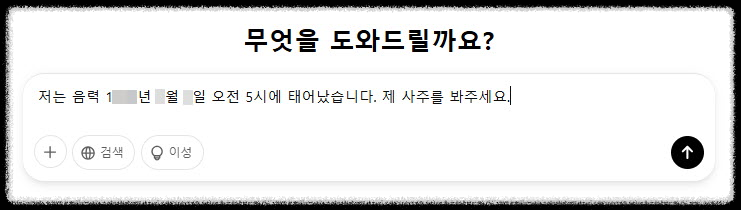 • 예시: "저는 1990년 1월 1일 오전 1시에 태어났습니다. 제 사주를 봐주세요."